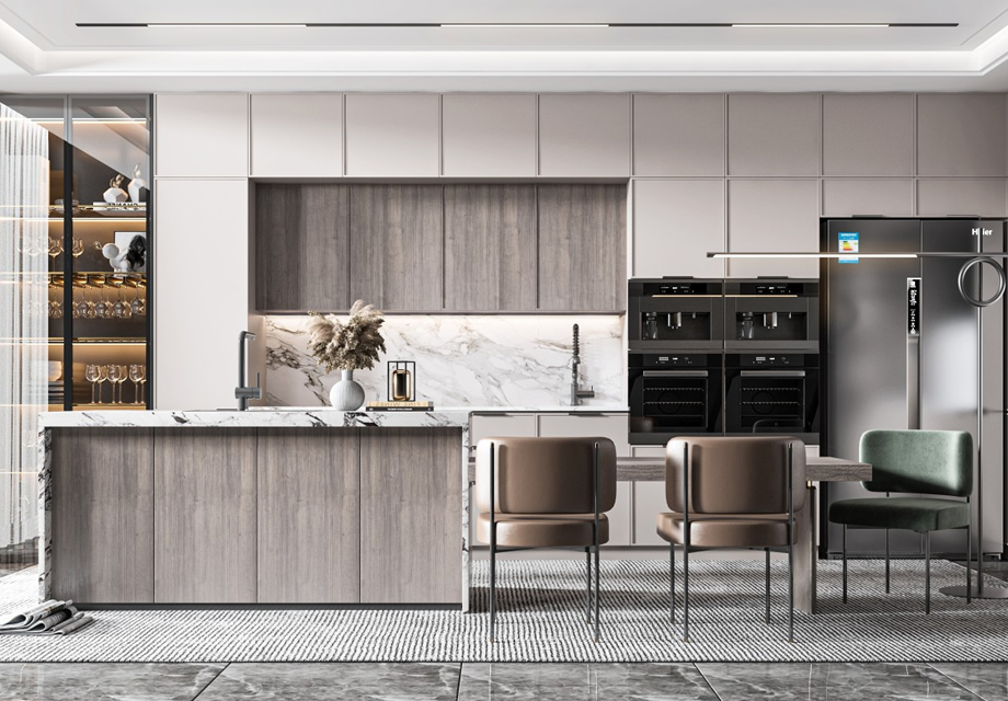 2. 櫥柜地柜吊柜,地柜可選"單邊一字“型或"L"型(原始戶型),吊柜米數不超過地柜米數的一半,包含側視板